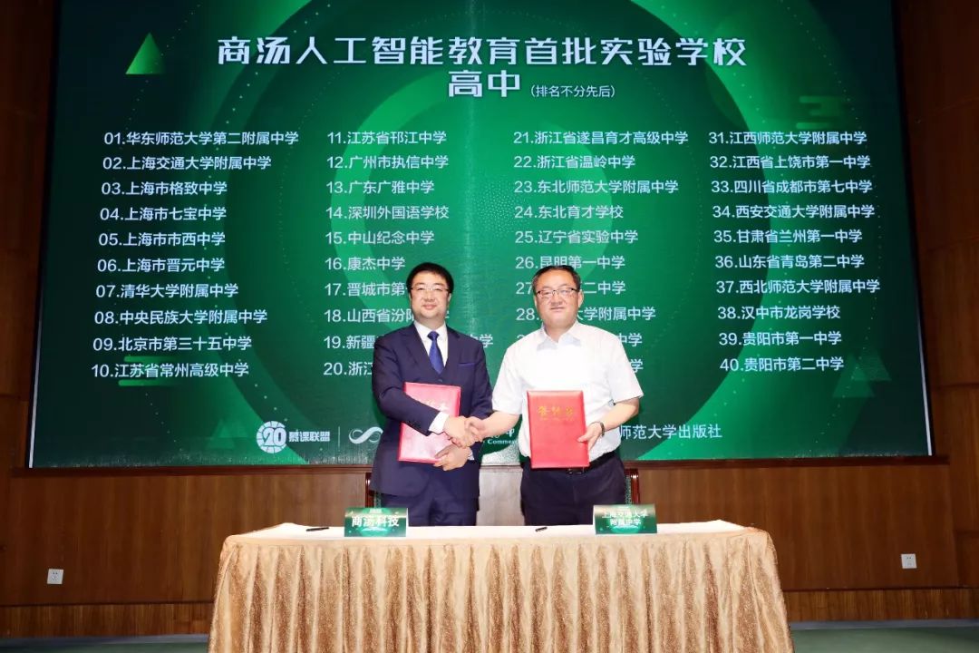 教材发布当天,包括清华大学附属中学、北京市第三十五中学、华东师范大学第二附属中学、上海交通大学附属中学、上海市市西中学在内的首批“人工智能教育实验基地学校”与商汤科技完成签约,并接受现场授牌。