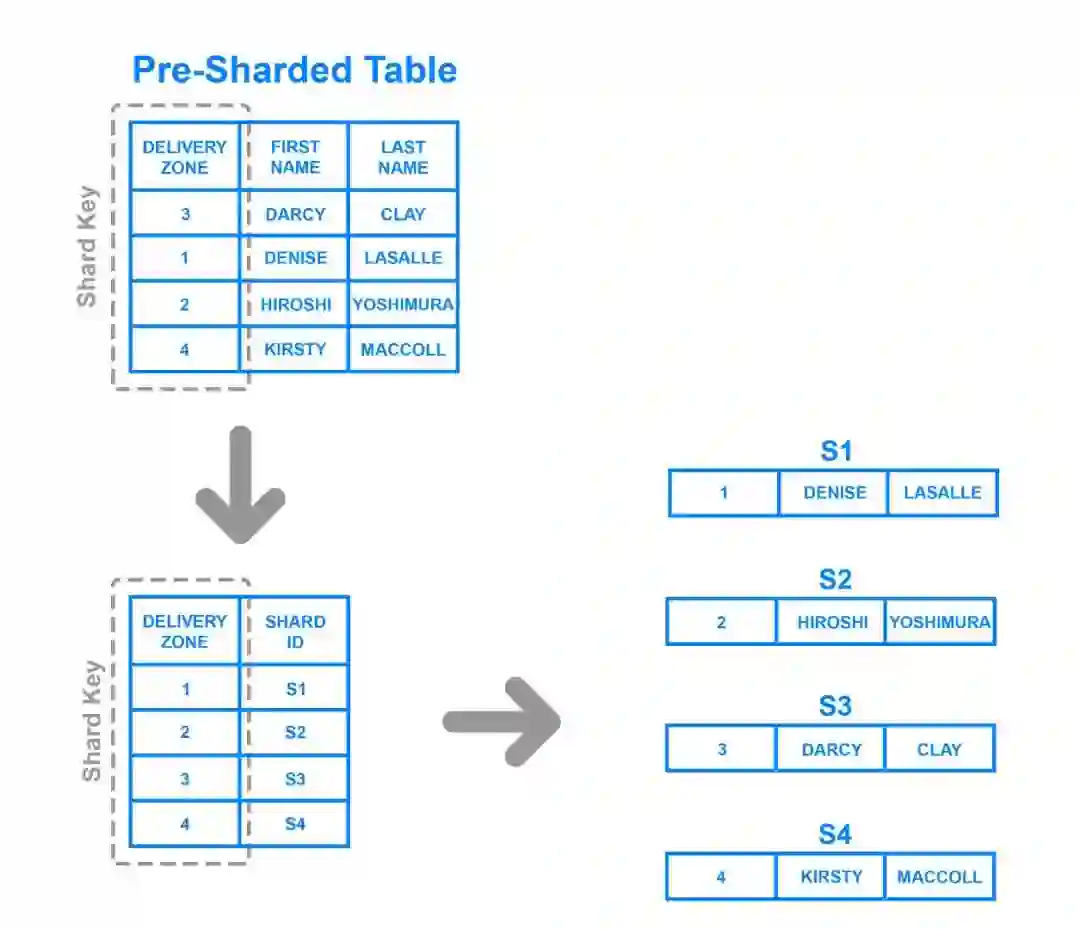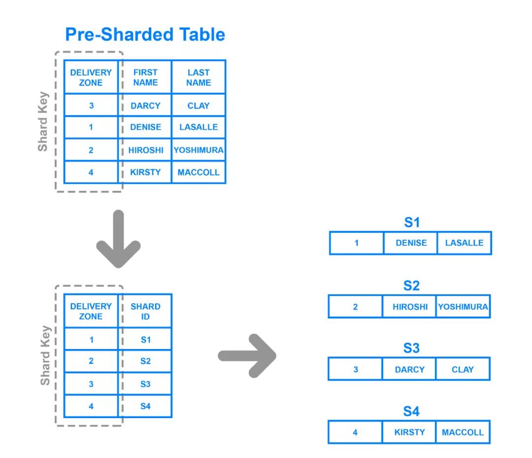 这种方式实现非常简单,但极有可能出现热点问题,数据集中在某个分片中,导致各服务器操作失衡。