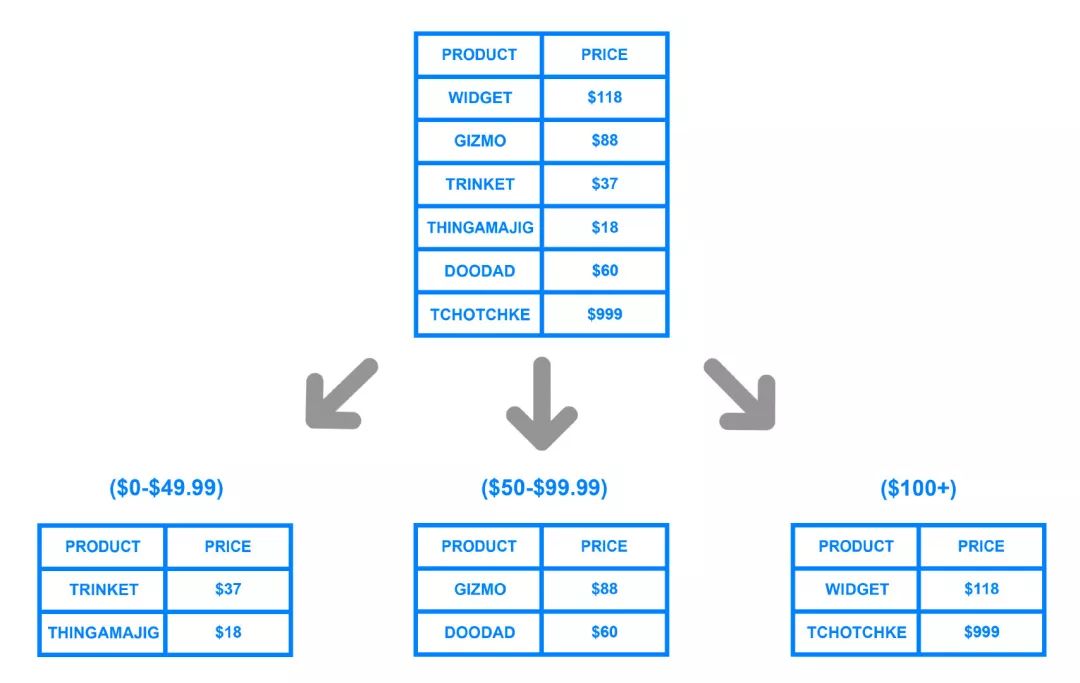 例如某列是数值形式(如价格),那么就可以按值的范围划分。