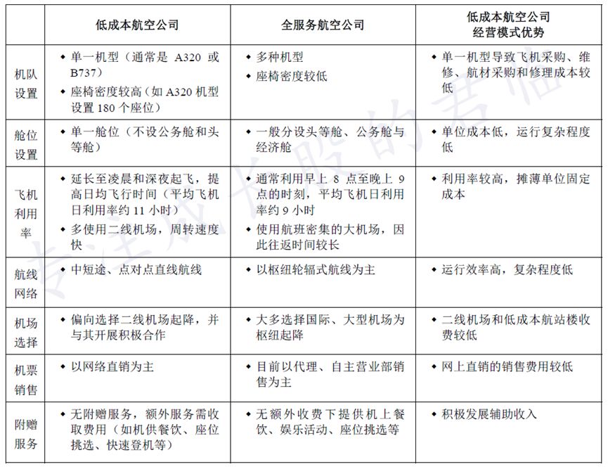 看看春秋招股书中对不同业务模式航司的比较: