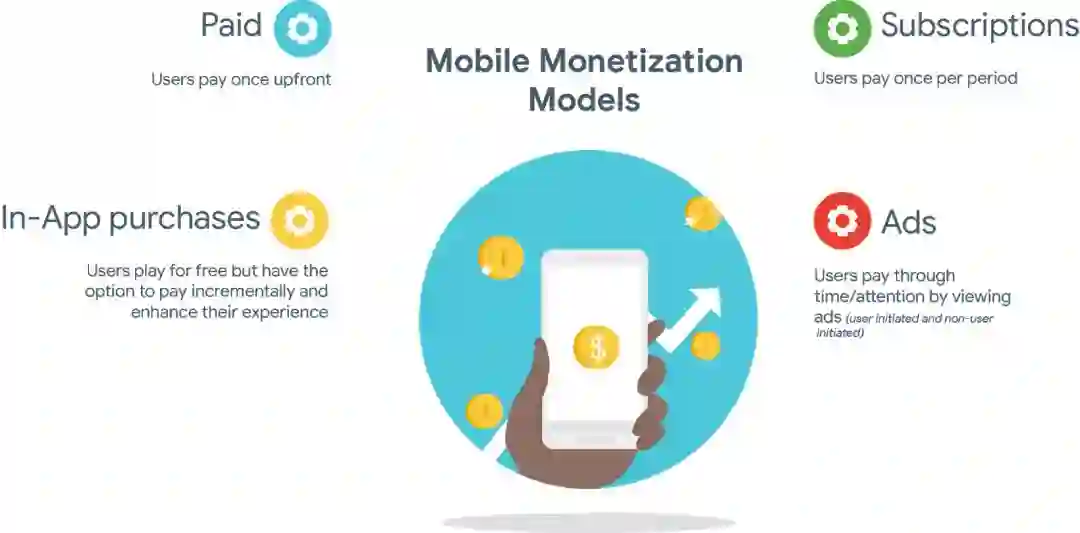 众所周知,移动业务一般可以通过四种方法把产品价值转化为实际收入。鉴于下文许多内容都会涉及到这四种变现模型,所以让我们先简单回顾一下这四个模型,以及它们各自在用户参与方面的一些特征与特点。