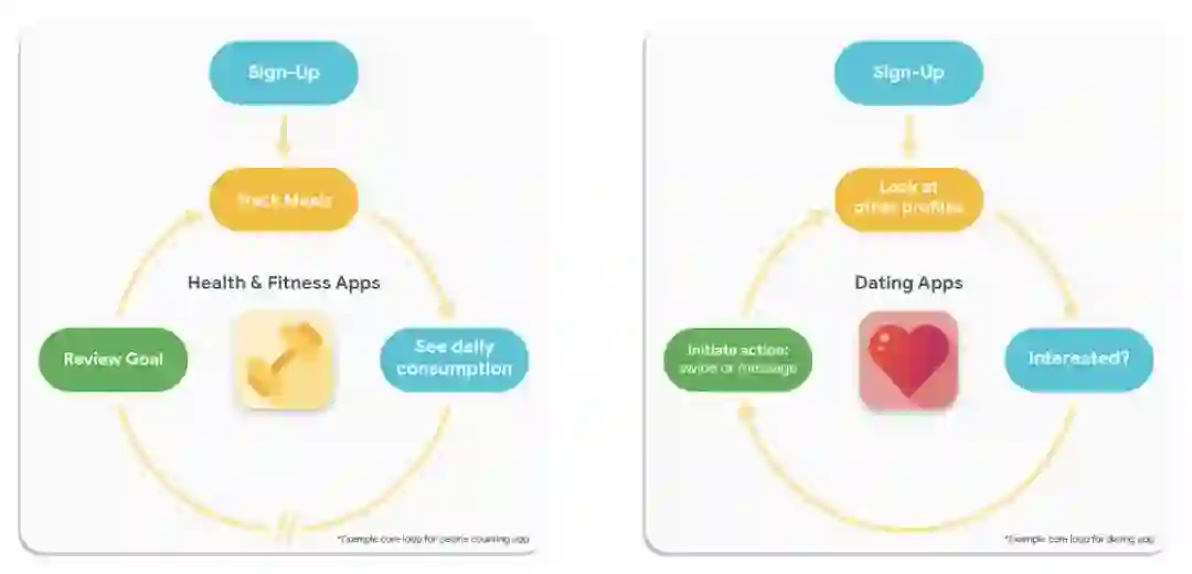 下面,让我介绍几类不同应用的核心闭环,看一看它们各自的参与用例有何不同。
