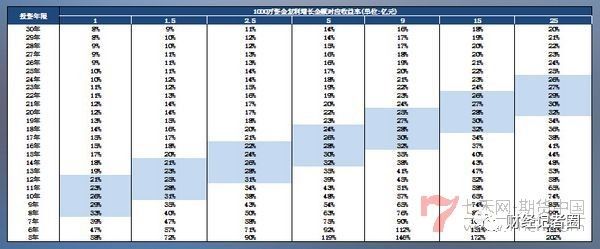 下面这张图,我们称之为:亿万富翁的走廊,左边坐标是投资期限,横轴是亿元单位。阴影部分是21-30%的收益区间。