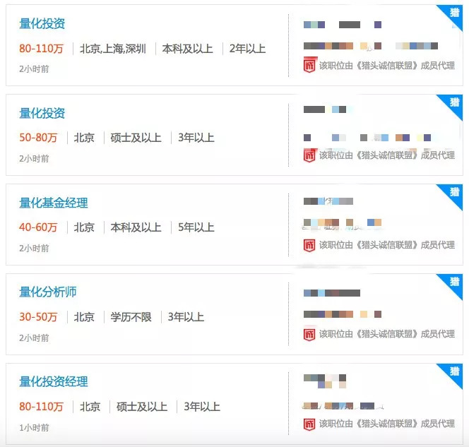 猎聘网更有知名券商开出百万年薪招募量化人才。