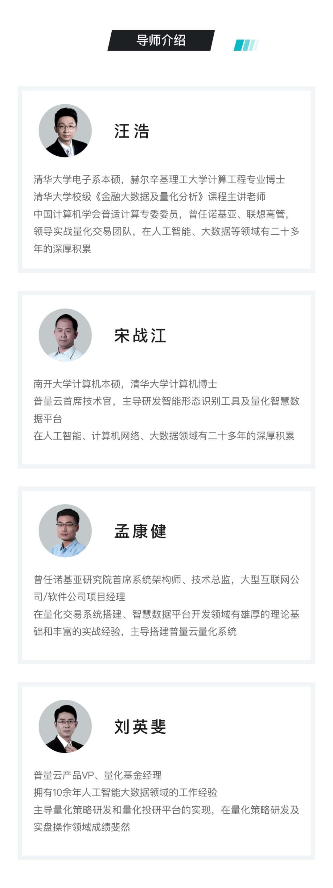 那么,欢迎参加学堂在线联合清华大学《金融大数据及量化分析》原班师资团队,重磅打造的——量化分析训练营!