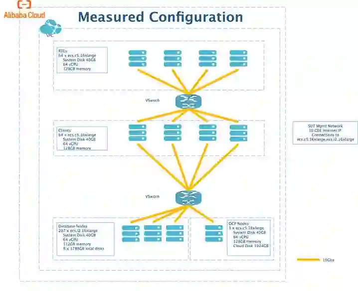 据技术团队透露,本次测试“OceanBase的数据库服务器使用的是204+3台型号是ecs.i2.16xlarge阿里云ECS服务器,其中204台作为datanode,还有3台作为root node” 。测试采用的服务器与生产系统完全一样。