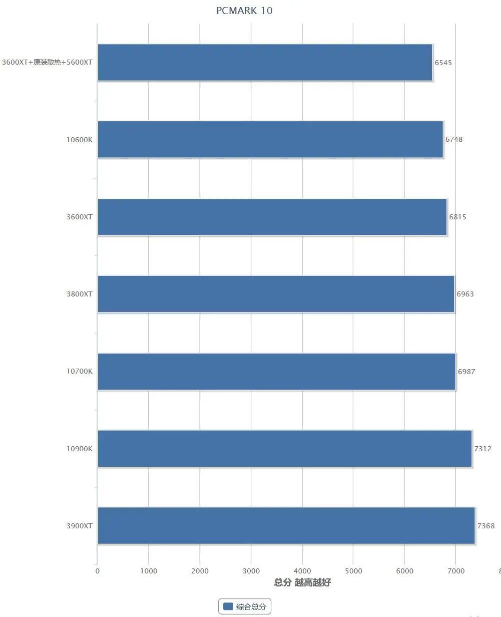 在测试整机整体性能的PCMARK10中,3900XT拔得头筹。