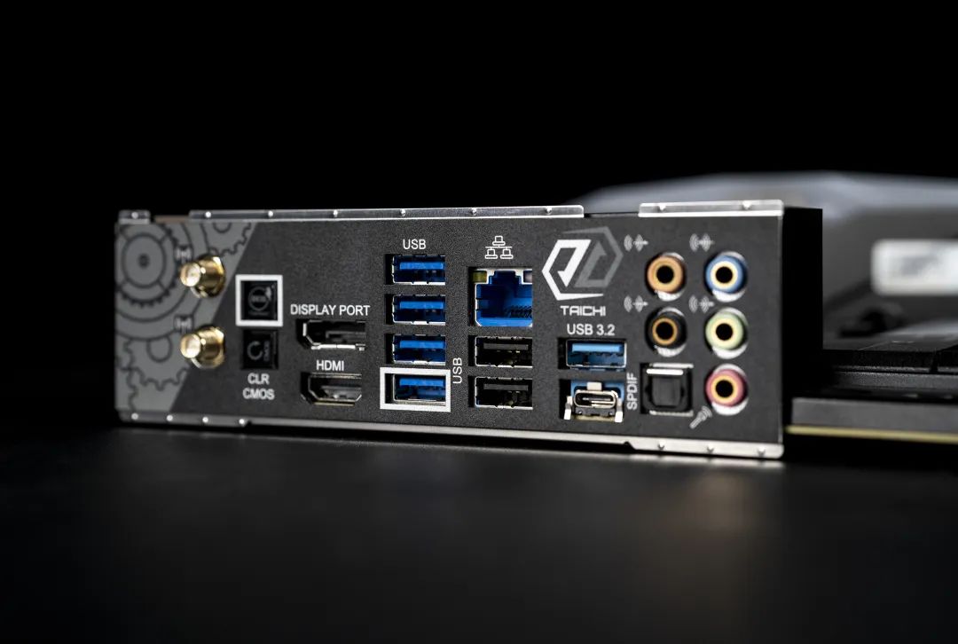 这次测试的3600XT和3800XT使用的是华擎B550的旗舰太极,比起X570,B550上的太极标志性金色齿轮更加突出,M.2固态硬盘安装方式也更加便捷了,快捷开机、重启键、Debug灯,Type-C接口也同样没落下。