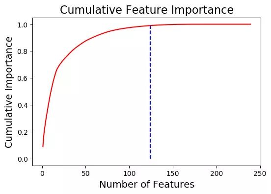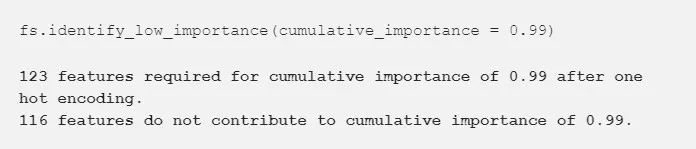 例如,下面的调用函数找到最低重要度的特征。它并不需要达到 99% 的总重要度: