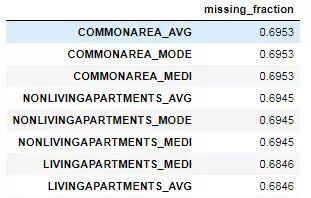 我们可以从 dataframe 看到这些特征的缺失值比例: