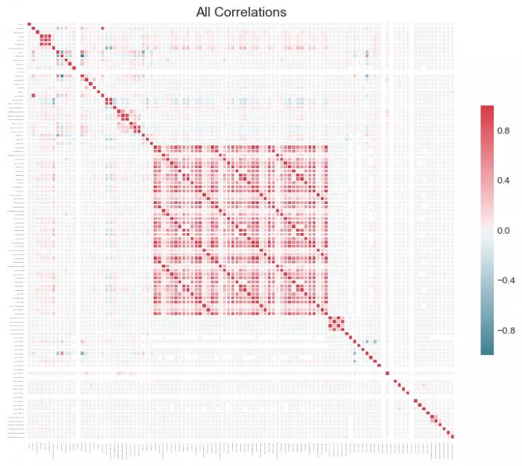 如果想直接了解整个数据集,我们也可以绘制数据集中所有特征的相关系数热力图。只要在方法中传入 plot_all = True: