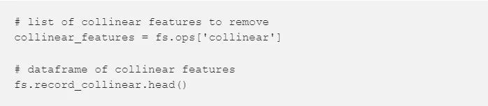identify_collinear 方法基于指定的相关系数值,找到那些共线特征。对于每对相关的特征,程序识别出其中一个特征,并剔除它(因为只需要剔除其中一个):