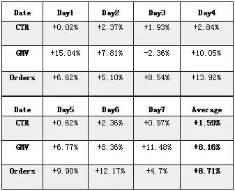 作为一项以应用为目标的基础研究成果,Telepath在京东的诸多场景都有落地,在推荐、广告等实际业务中都发挥了作用。表1和表2分别展示了Telepath在一个京东App推荐位和一个京东广告合作媒体上线的效果,可以看出,在这两种场景下,点击率(CTR)和GMV都有显著的效果提升。