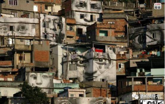 上图:为里约一处贫民窟:展示了法国摄影家的JR的艺术作品