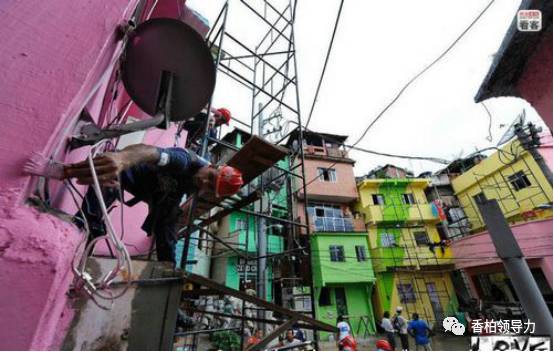上图:在里约准备迎接2014年世界杯赛及2016年奥运会之际,巴西政府决定要给这些贫民窟来个变脸大整治,并且开辟出30余个景点,使其成为巴西的“旅游富矿”。上图为两名荷兰艺术家和当地青年合作,利用贫民窟的房子创作巨型涂鸦。