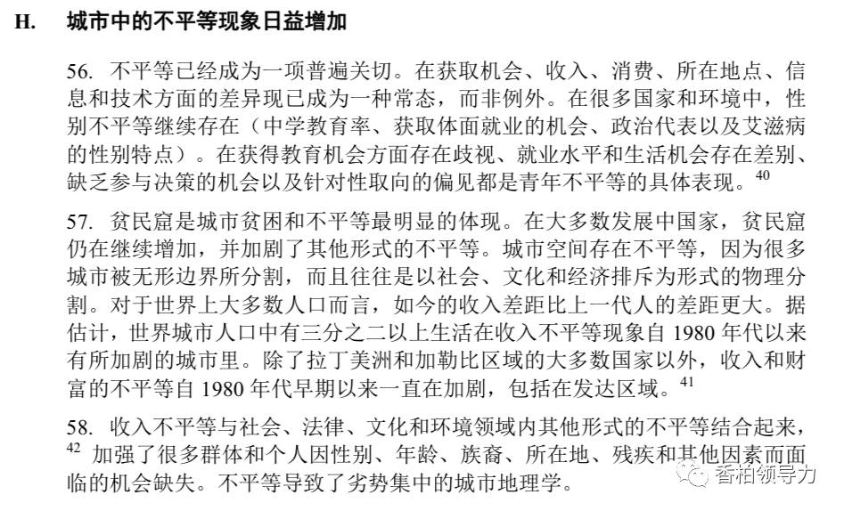 联合国的报告这样阐述贫民窟在当今全球的兴起,认为它与城市化及城市中的不平等密切相关,“贫民窟是城市贫困和不平等最明显的体现”(参见以下截屏):