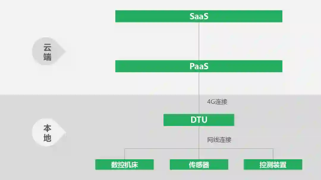 在数据传输方面,厂房内的设备,环境比较复杂,一般会使用网线将机床设备连接到集中的数据处理装置上,再通过4G或者固网连接到云平台;厂房外的设备,比如工业车辆,则通过内置4G通信模块的终端来完成数据采集和传输。