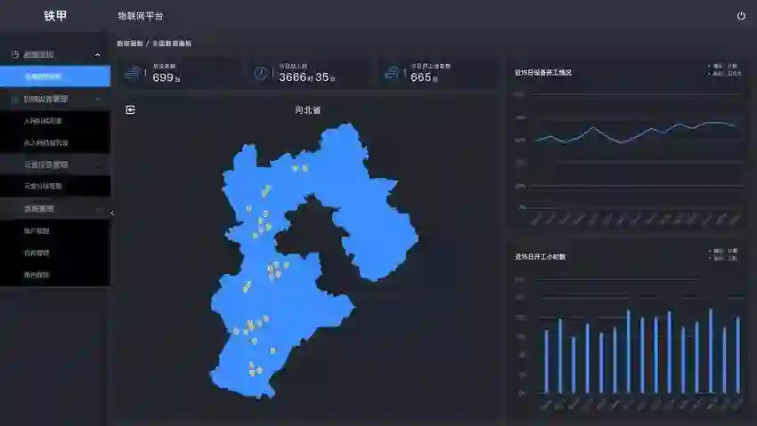工程机械领域也是工业物联网的一个行业应用,工程机械设备加装物联网接入终端之后,可以及时获取设备的位置和状态信息,提高设备使用和管理效率。物联网接入服务一般包含两部分,第一部分是提供物联网接入终端,第二部分是工业物联网大数据平台。