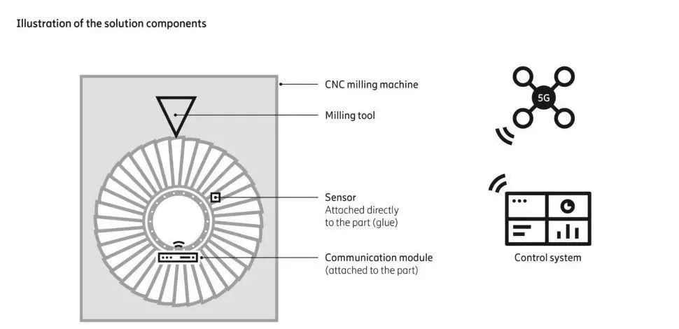 但当前的通信技术还不能很好的支持这个解决方案,5G是这个解决方案的关键所在。这个案例中,5G最大的优势是可以提供极低的时延和稳定的网络。为了达到实时控制,传感器的信息需要在1毫秒内响应和处理,5G通过提供极低时延的能力确保了实时控制的实现,从而确保了可以应用在叶盘生产的过程中。