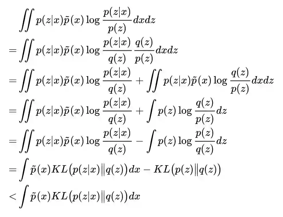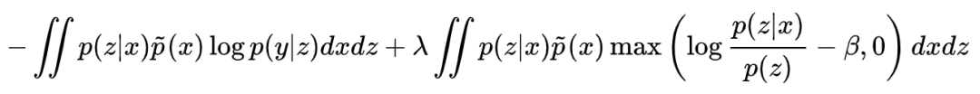也就是说,互信息大于 β 之后,就会出现一个正的惩罚项。当然,很多时候我们不知道 β 设为多少才好,所以一个更干脆的做法是去掉 β,得到: