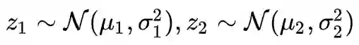 这也就是说正态分布的随机变量的和还是正态分布。这意味着什么呢?意味着在正态分布的世界里,两个变量的线性插值还仍然处在这个世界。这不是一个普通的性质,因为显然对两个真实样本插值就不一定是真实的图片了。