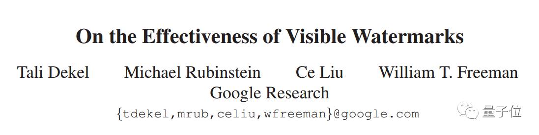 研究的相关论文已经在7月底召开的CVPR上发表,题为《On the Effectiveness of Visible Watermarks》。Tali Dekel、Michael Rubinstein、Ce Liu和William Freeman四名作者均来自谷歌。