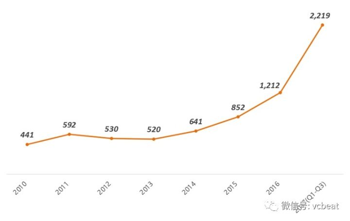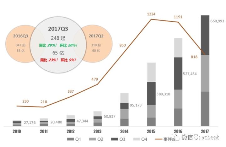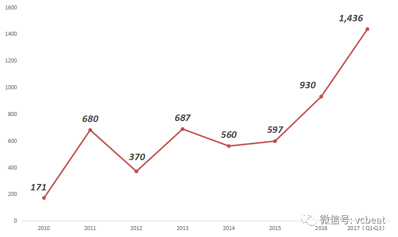 可见,2017Q3仅以2014年30%的投资事件数,便得到了比2014全年还多的融资规模。