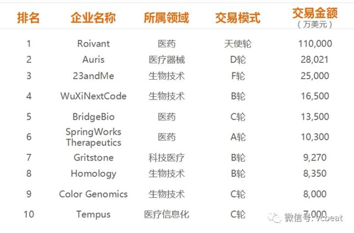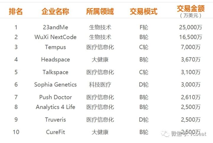 2017年Q3:海外医疗健康行业获投资金TOP10