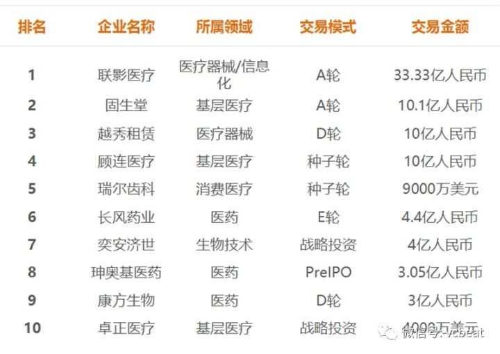 联影医疗获得33.33亿人民币A轮融资,为国内医疗健康领域于一级市场的史上最大融资。