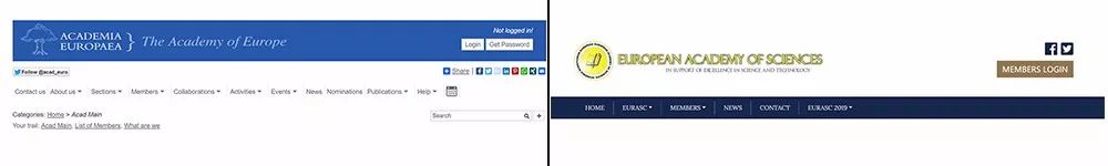 左边为Academia Europaea官网,右边则为European Academy of Sciences官网