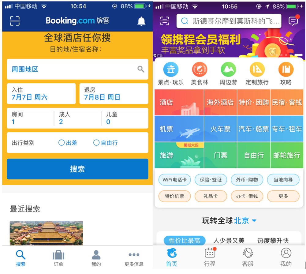 其次,中外商业理念和消费习惯不同。Booking是以垂直搜索为导向的,首页是“全球酒店任你搜”,背后是227个国家的13.4万个目的地的2800万可预计房源。携程等中国互联网公司是以用户需求为导向的。同时,大而全的“一站式服务”也是中国消费者希望的。