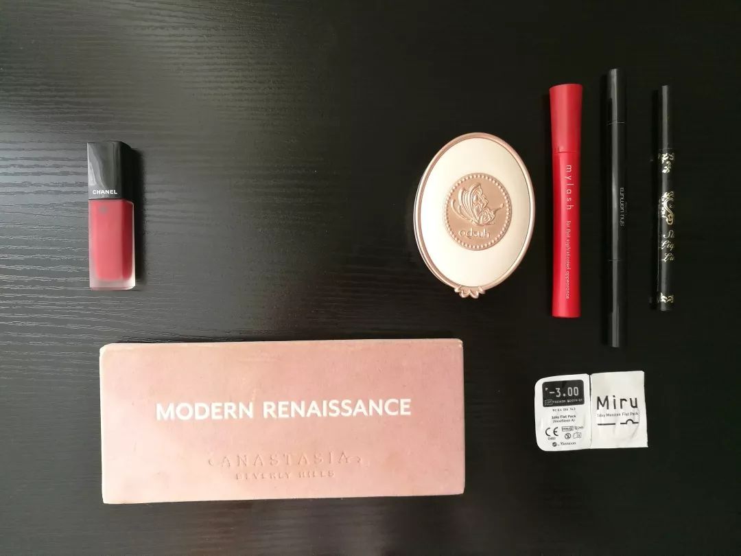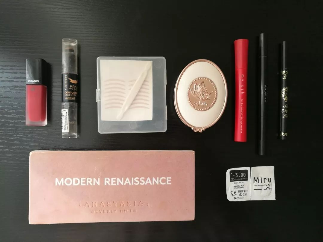口红、腮红、眉毛、眼线、睫毛、眼影、美瞳