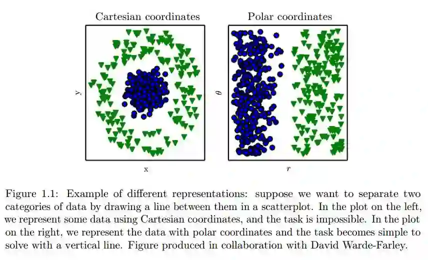 足够好的表征,与足够好结果之间的依赖性广泛存在于计算机科学和我们的日常生活中。例如,我们几乎可以瞬间在 Spotify 上找到任何歌曲,因为他们的曲库很可能就是用智能的数据结构来存储的,比如说会是三元搜索尝试(Ternary search tries),而非常见的简单结构,例如无序数组。另一个例子:学童可以使用阿拉伯数字轻松进行数学计算,但如果使用罗马数字,情况就截然不同了。机器学习也是如此,输入表征的选择将对学习算法的效果产生巨大影响。