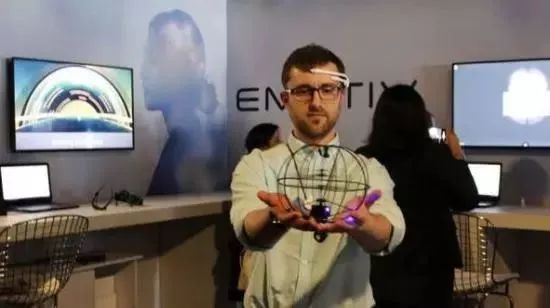 操作者借助脑波感应头盔通过脑波控制无人机飞行。