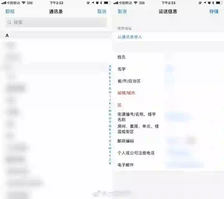 导入通讯录地址后你会发现城市和区还要自己输入,不知道这什么情况,但选择城市和地区就快多了。地址全部输完后储存,同意条款就可以点击 Apple Pay 验证指纹付款了。