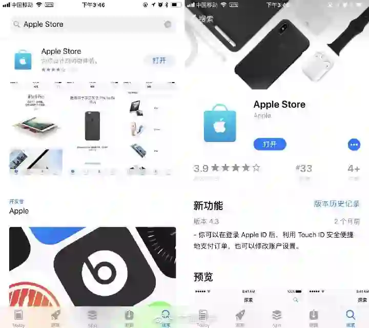 注意:「App Store」和「Apple Store」不同,App Store 是苹果的应用商店,Apple Store 是苹果的在线商店