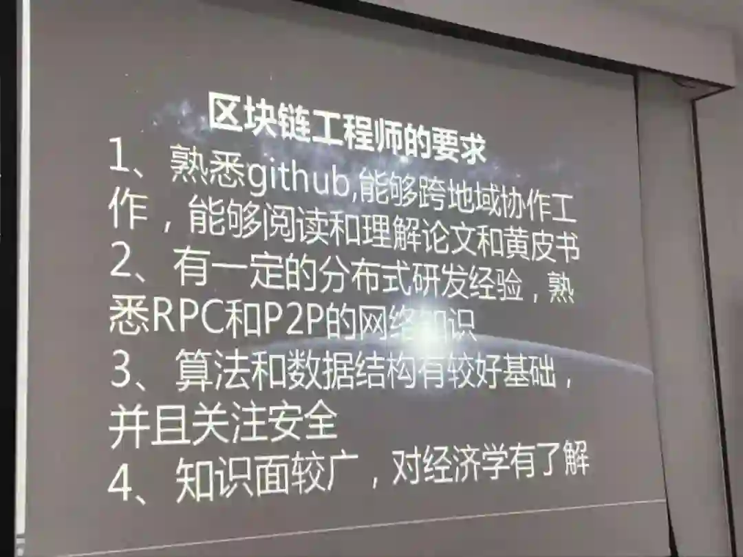 会上,我们还请到了一位亲身经历过社区学习过程的吴问涛。他从大数据转向区块链,从C级小白开发者成长为S级区块链开发者。他为我们分享了自己的转型之路,讲到区块链开发与一般互联网开发的区别,比如从公司到社区协助开发,采用分布式系统,引入了经济激励机制等等。如果想成为一名区块链开发者,首先要熟悉github,有一定的分布式研发经验,熟悉RPC和P2P的网络知识,还要对算法和数据结构有较好基础。因为很多的区块链源码均使用go或c++语言,良好的go或c++语言编程能力是必不可少的,如果要想在以太坊上进行合约开发,那就要熟悉Solidity语言。