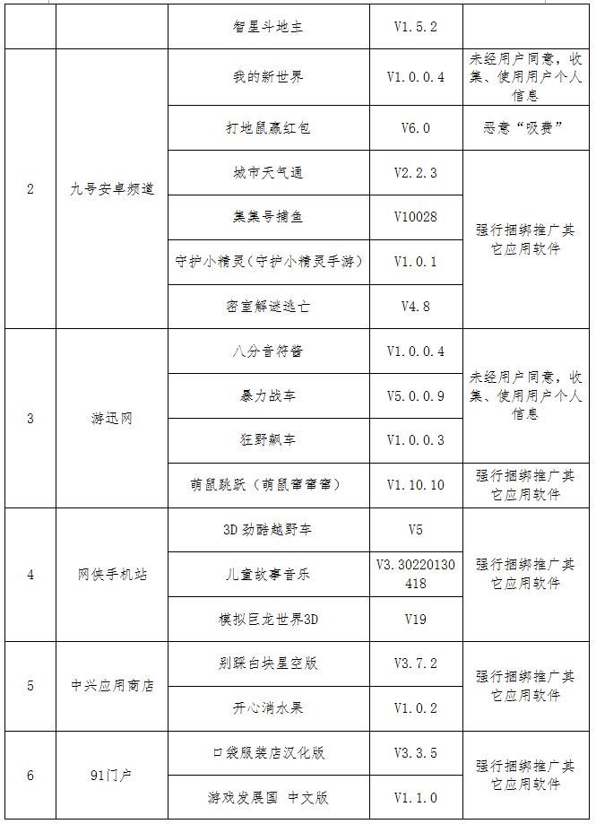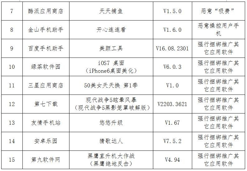 通告显示,二季度,工信部组织对55家手机应用商店的应用软件进行技术检测,发现违规软件42款,涉及违规收集使用用户个人信息、恶意“吸费”、强行捆绑推广其他应用软件等问题。