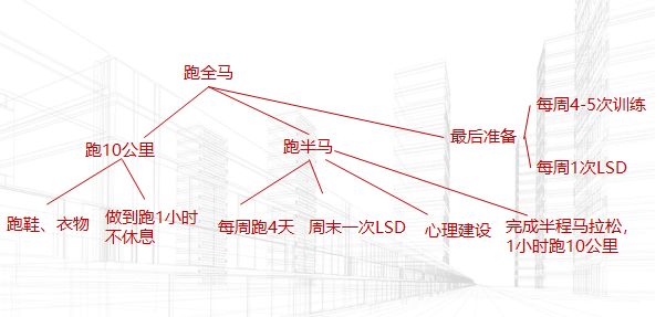 举个例子,我决定今年去跑一次全程马拉松的话,那我就可以把它拆解为跑到十公里;十公里还可以继续往下拆解,五公里、三公里、一公里……