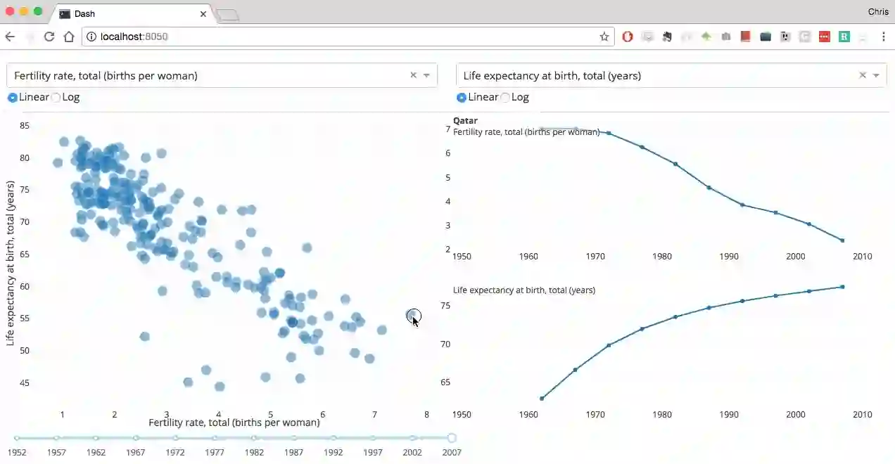 Dash是一个纯Python写成的框架,无需JavaScript即可构建交互式的分析类web应用程序。[Github 3281 stars,由Chris P提供]