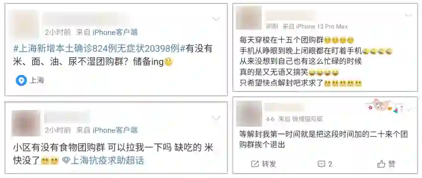 疫情期间许多商家在微博等渠道发布了团购信息,社区志愿者可以根据这些信息在社区内部发起团购。