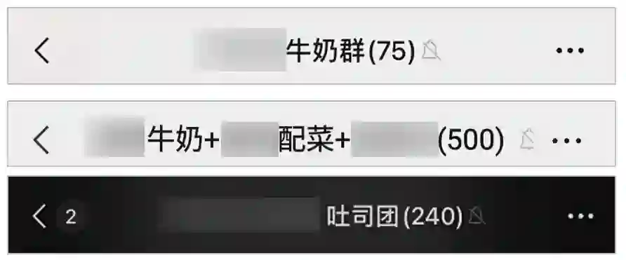 因为大家的需求不同,所以也出现了不同类目的团购群,比如牛奶群、配菜群、吐司群等。
