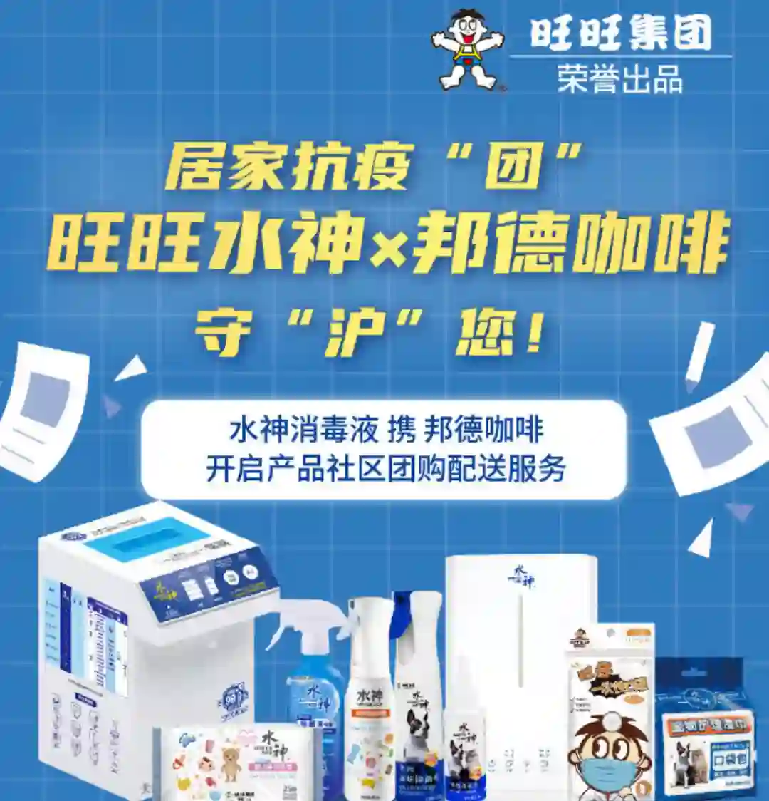 再比如,本轮疫情中,一直以食品零售闻名的旺旺,开始转型做起了“消毒水与咖啡”的供应商。