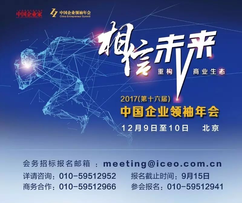 2017(第十六届)中国企业领袖年会会务招标已经启动(详情请戳:企业领袖大聚会,需要一个大舞台,你有好创意吗?),欢迎报名,资料请发邮箱:meeting@iceo.com.cn。点击下图可报名参会。
