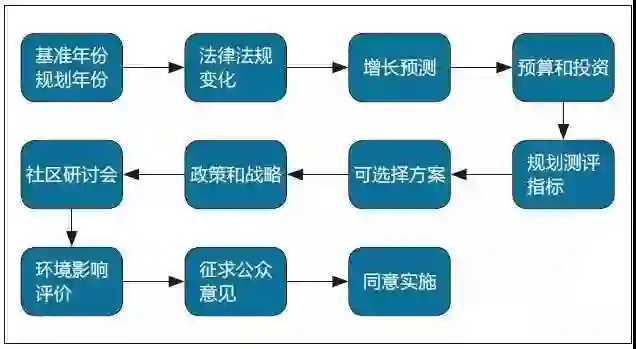 加利福尼亚州州长办公室直属的加州交通委员会(简称CTC)每四年会发布一个新的规划指南。根据该指南,典型的区域交通规划的工作流程如下: