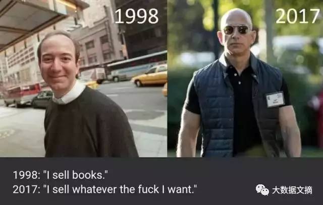 前几天,在美国著名新闻站点Reddit上,一名网友晒出了亚马逊CEO贝佐斯在1998年和2017年的一张对比图并感叹说,Amazon CEO Jeff Bezos has changed quite a bit.这条消息引来了无法吐槽和转发,中国网友甚至把这张图转到了微博和微信朋友圈里。