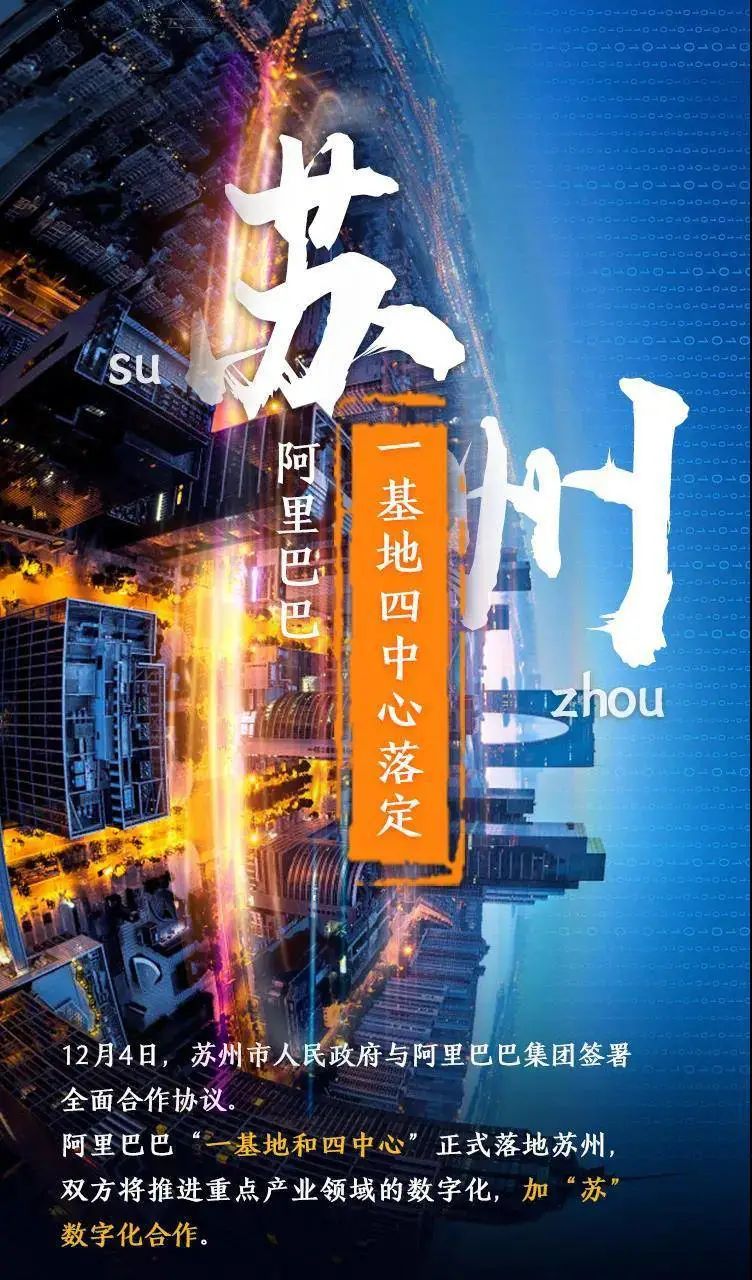 苏州市人民政府与阿里巴巴集团签署全面合作协议。根据协议,阿里巴巴“一基地和四中心”正式落地苏州,双方将推进重点产业领域的数字化,加速数字化合作。