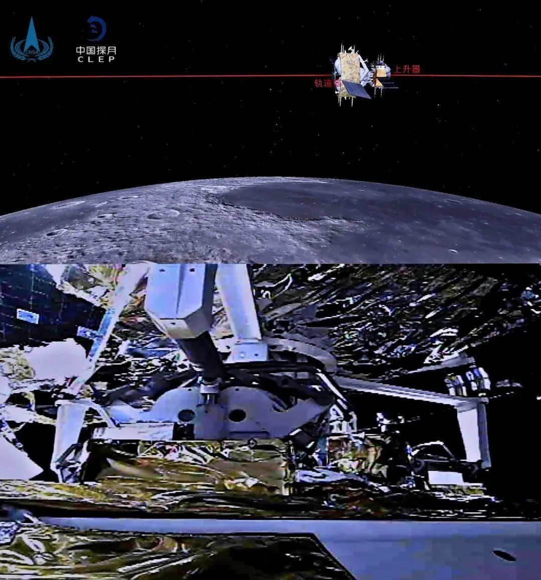 北京时间12月6日5时42分,嫦娥五号上升器与轨道器和返回器组合体成功完成交会对接,在6时12分将月球上采集到的样品容器安全转移至返回器中。这是我国首次月球轨道交会对接,整个过程大约是上升器进入环月飞行轨道,然后通过远程导引和近程自主控制,轨道器和返回器组合体逐步靠近上升器,以抱爪的形式捕获上升器,完成交会对接。在后续嫦娥五号轨道器和返回器将与上升器分离,并在适当的时候返回地球。