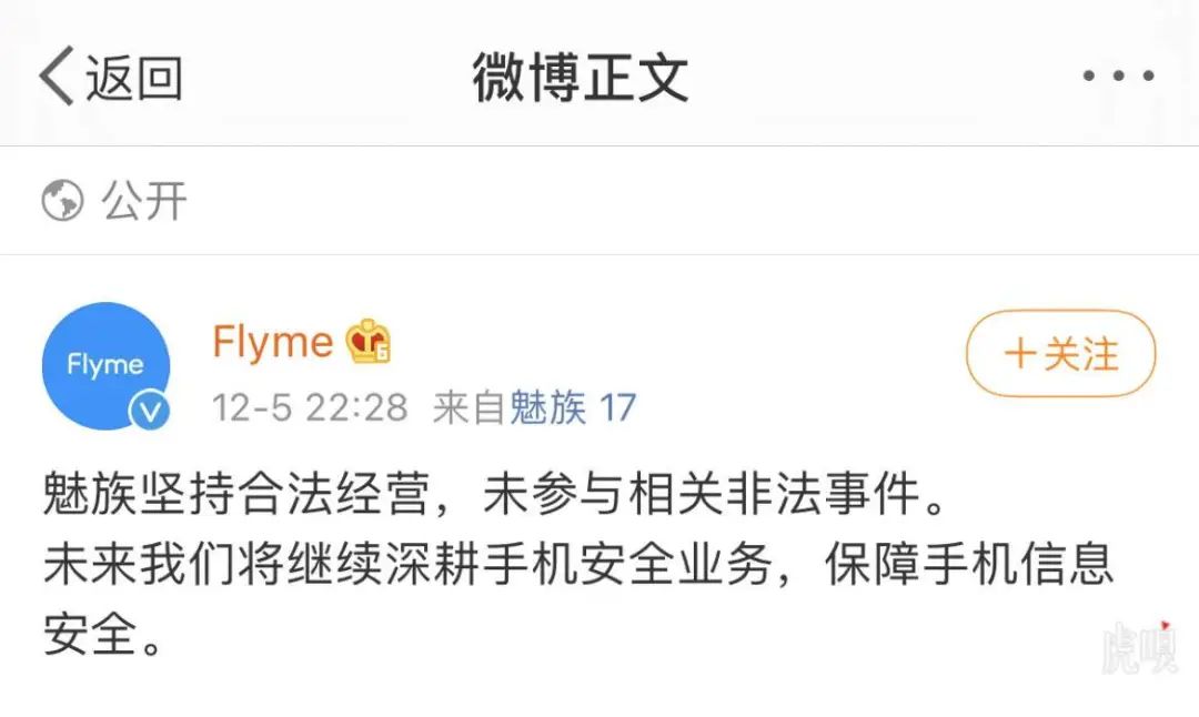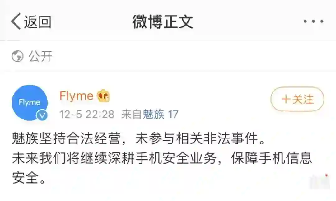 昨晚,魅族Flyme官方微博回应了有关“暗中给手机植入木马”的报道,称未参与相关非法事件。魅族表示,魅族坚持合法经营,未参与相关非法事件。未来我们将继续深耕手机安全业务,保障手机信息安全。