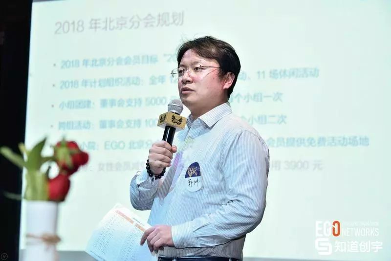 在小组委员杨攀、会籍委员栗伟、学习委员姚振分别介绍了自己可以为会员提供的服务之后,EGO 北京董事会会长,易观 CTO 郭炜作为代表向大家同步了 2018 年北京分会的整体规划: